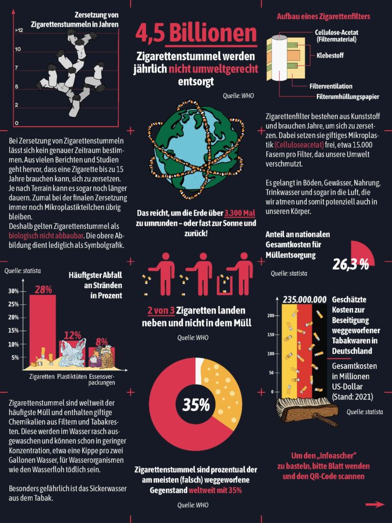 Zigarettenstummel sind nicht biologisch abbaubar und schaden der Umwelt. Sie sind der weltweit am Meisten weggeworfene Müll mit 4,5 Billionen Zigaretten jedes Jahr. Zwar ist es seit den 1950ern kein Mythos mehr, dass Zigaretten rauchen tödlich ist, gerät es dennoch gern in Vergessenheit, wie stark die kleinen Plastikfilter nicht nur unserer Umwelt, sondern auch uns Menschen schaden – auch finanziell.